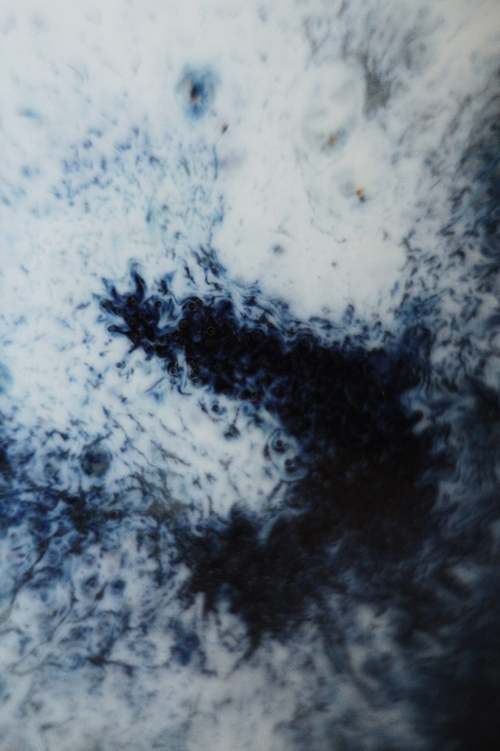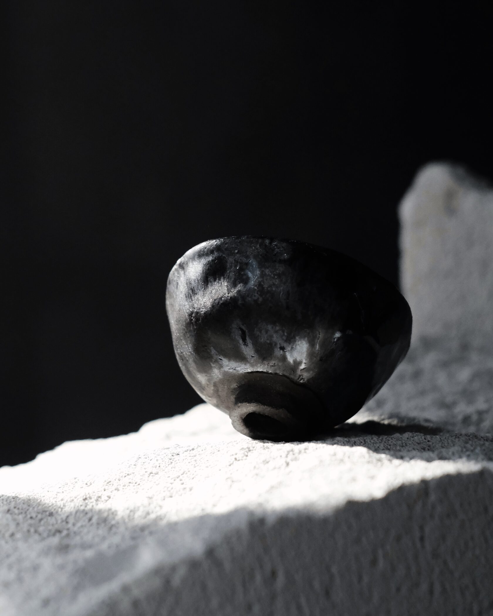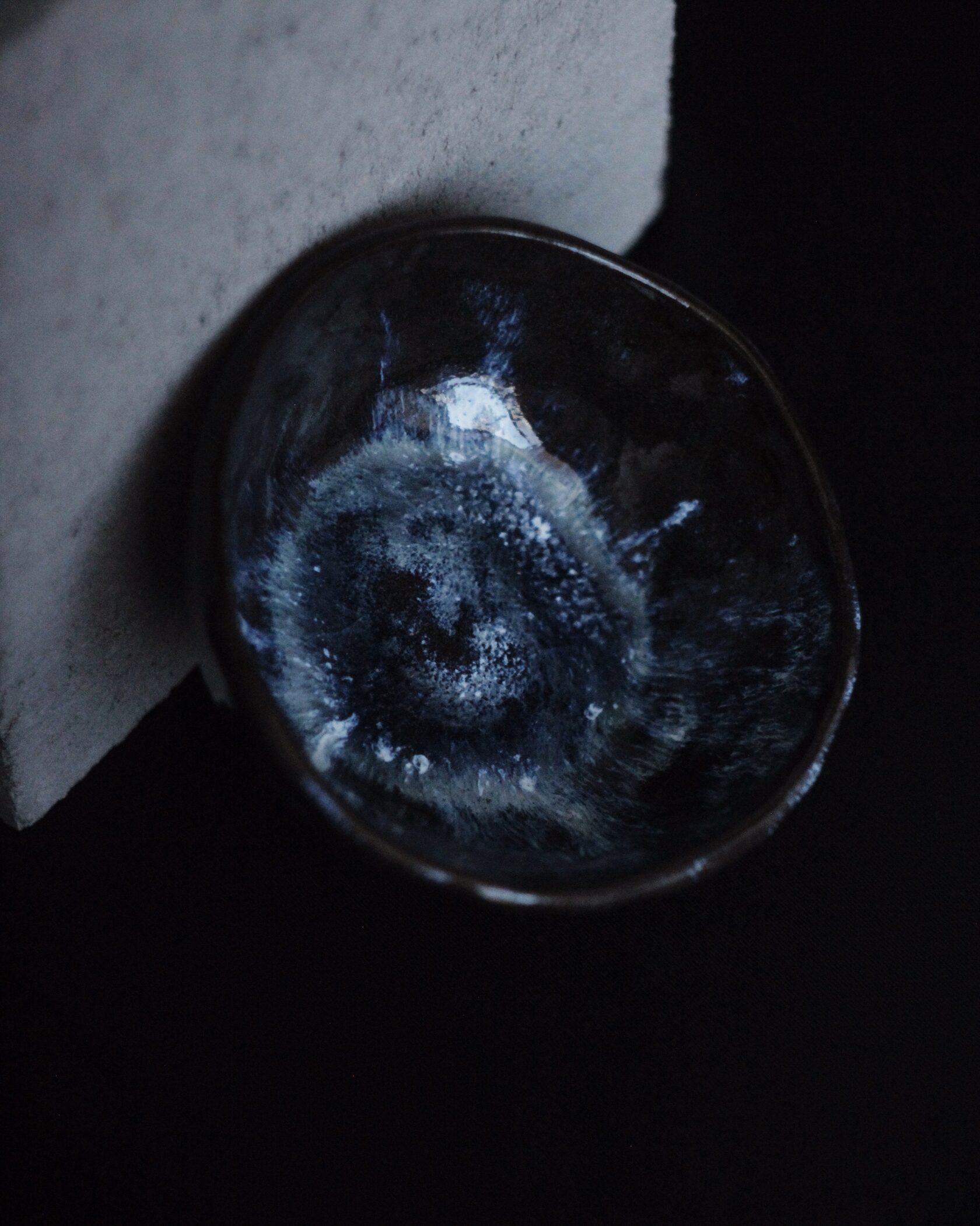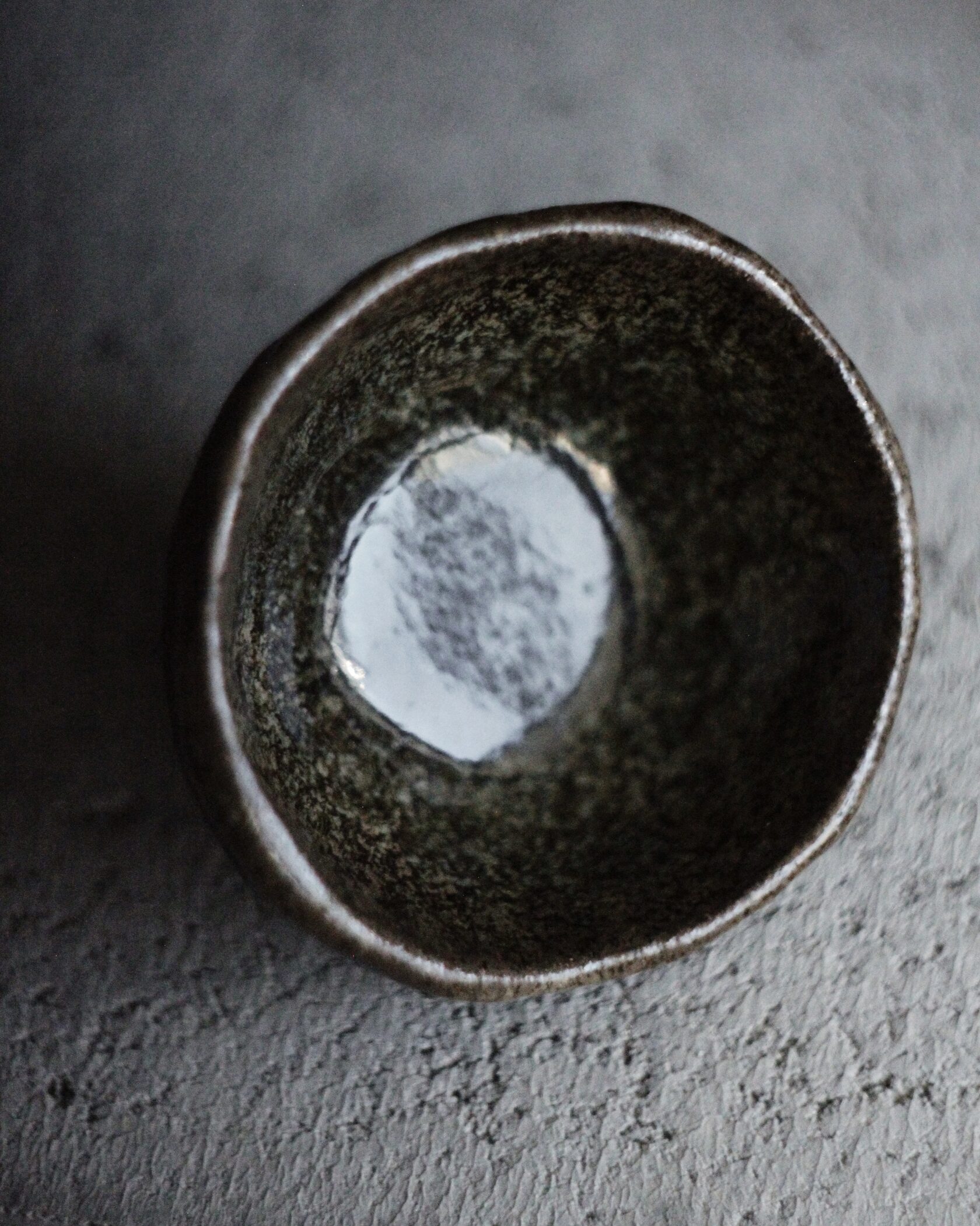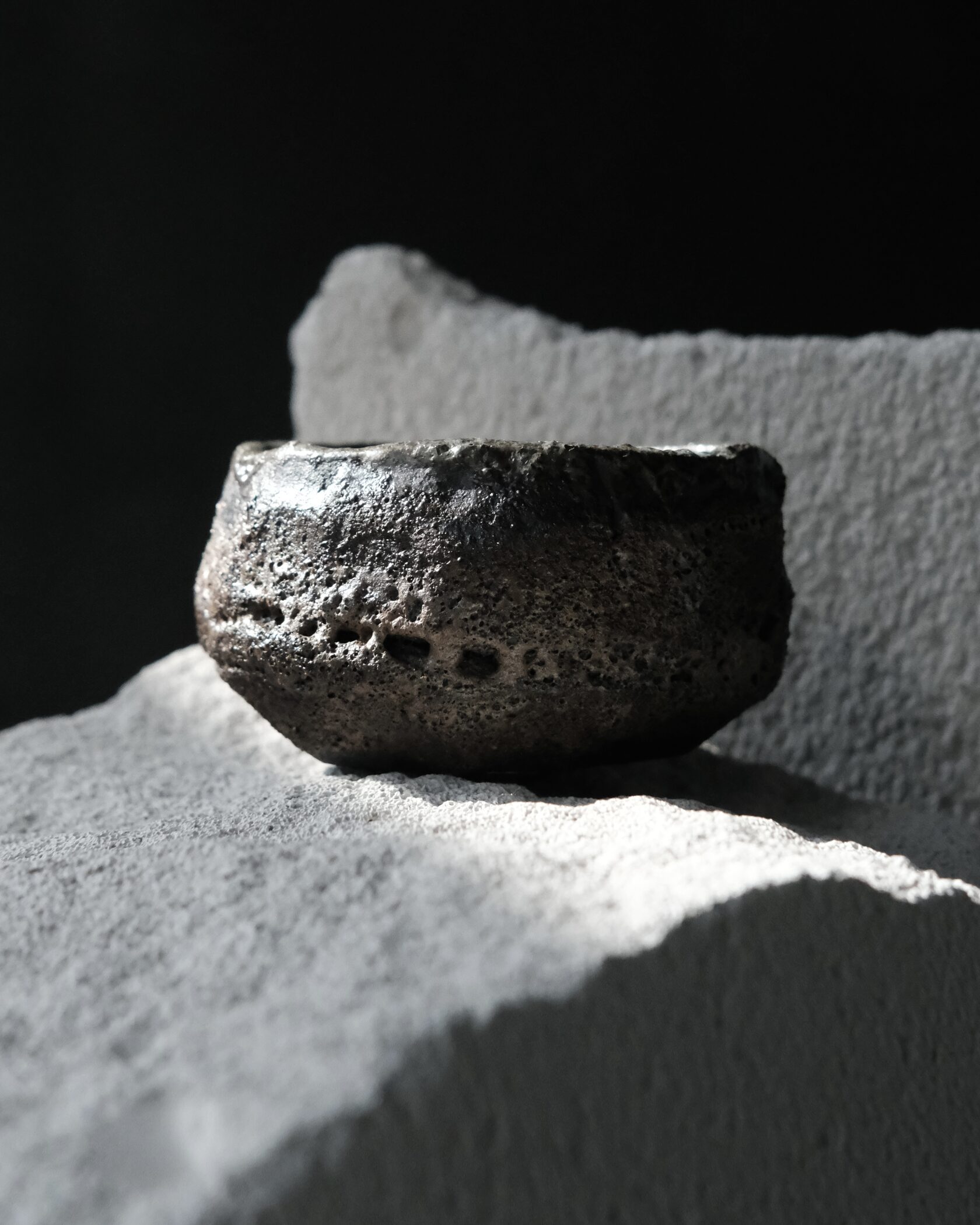 Пиала родилась под давлением — в буквальном и переносном смысле. После обжига на поверхности проявились кратеры — следы внутреннего напряжения, застывшие на стенках.